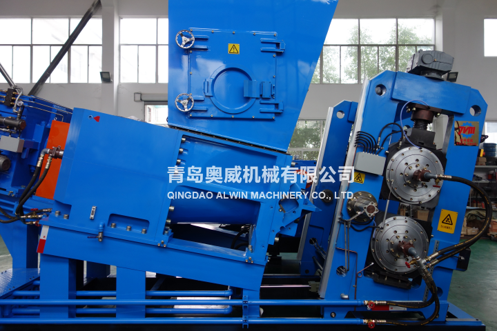 雙螺桿擠出壓片機與密煉機等配套使用,將密煉機分批排出的膠料經(jīng)雙螺桿擠出壓片機壓制成連續(xù)膠片